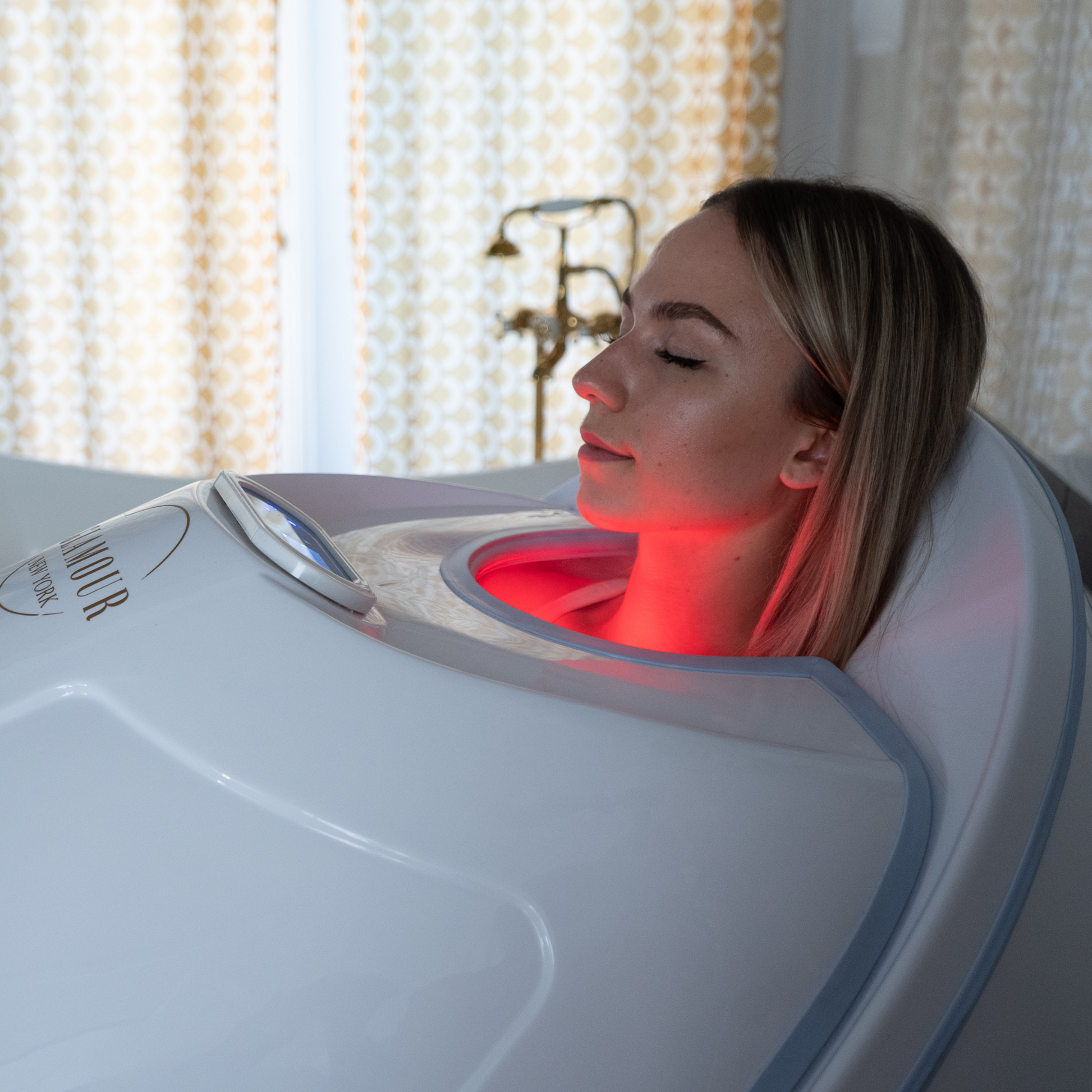The Revolutionary Sauna has a spacious and ergonomic design that allows you to sit comfortably during your session. It uses gentle steam to open your pores, cleanse and refresh your skin, and promote improved circulation. You can adjust the temperature to your preference, and the sauna comes with LED lighting that cycles through seven calming colors to enhance your spa experience.
