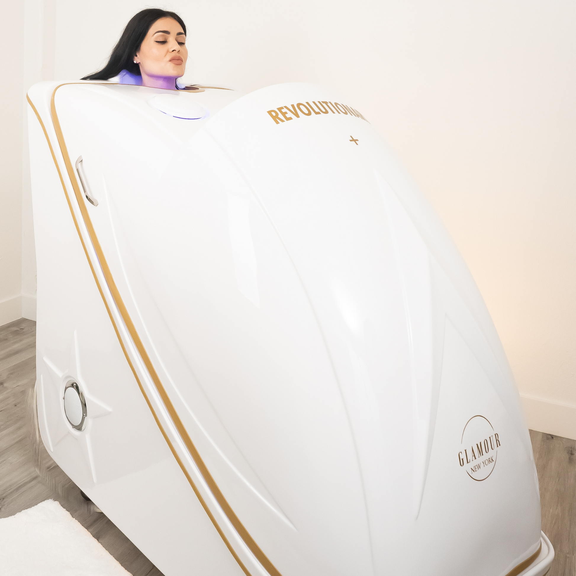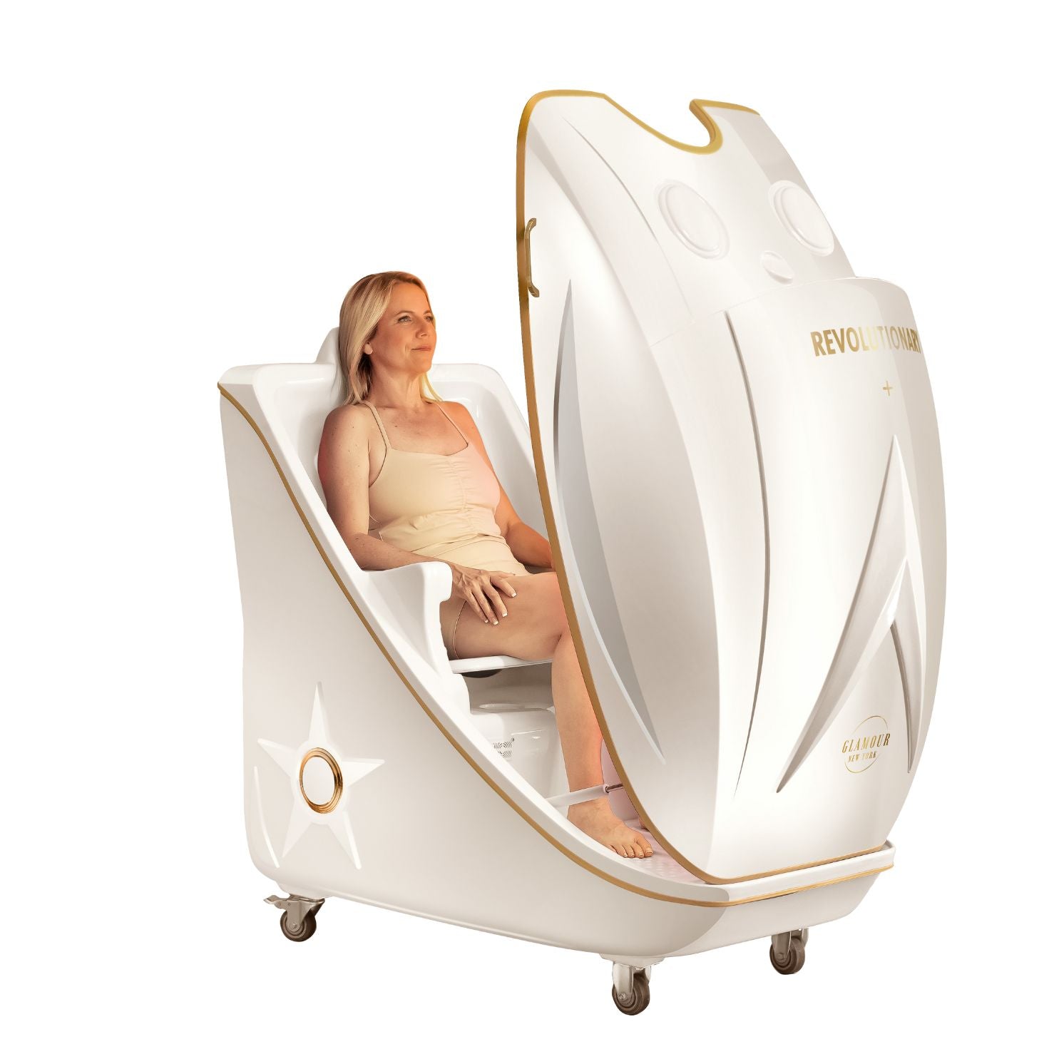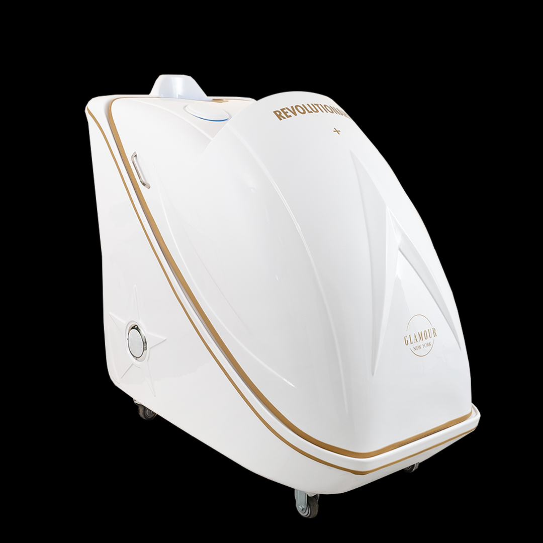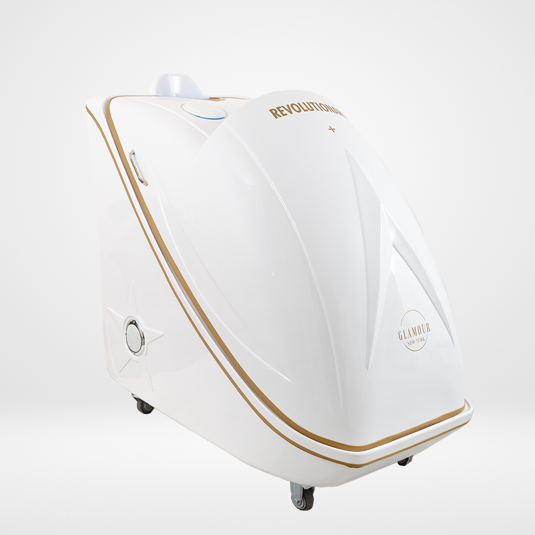 In addition to its core features, the Revolutionary+ includes gentle ozone cleansing, which purifies your skin by removing impurities, and soothing optical effects powered by LED lighting to create a calming ambiance throughout your session. The large interior is designed for maximum comfort, with ergonomic features like armrests and customizable seating height.