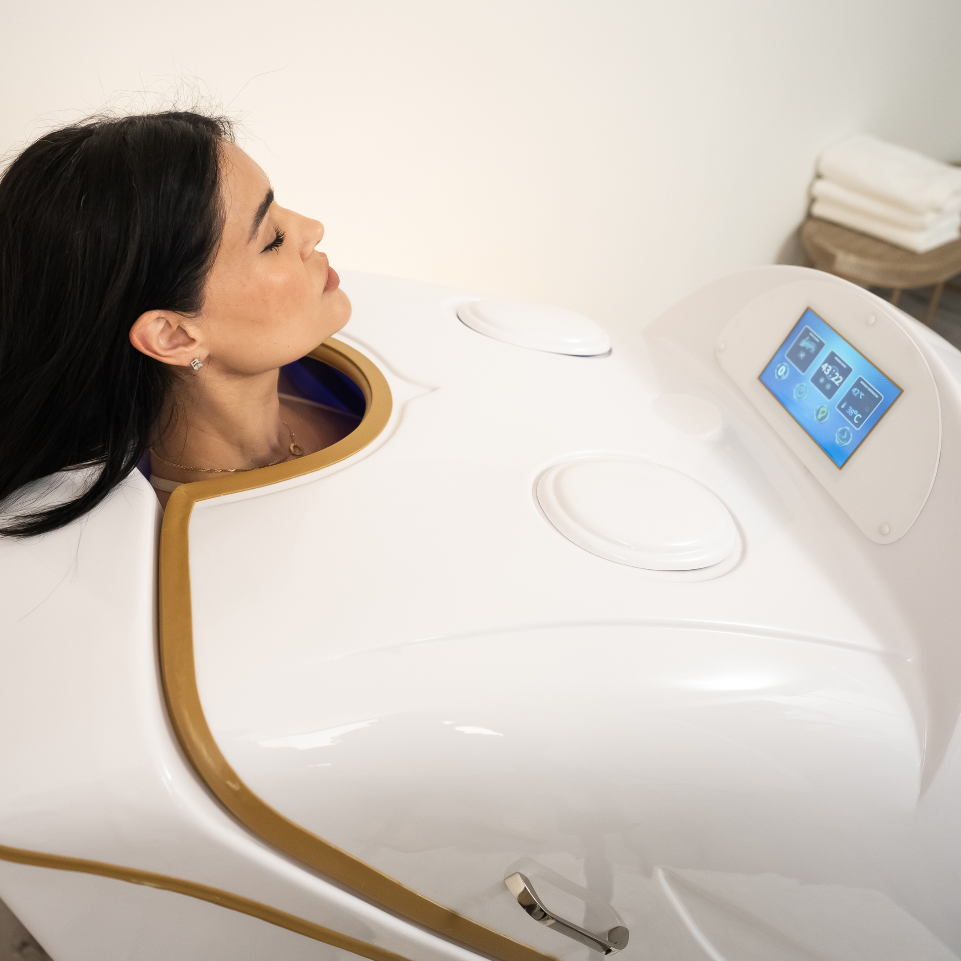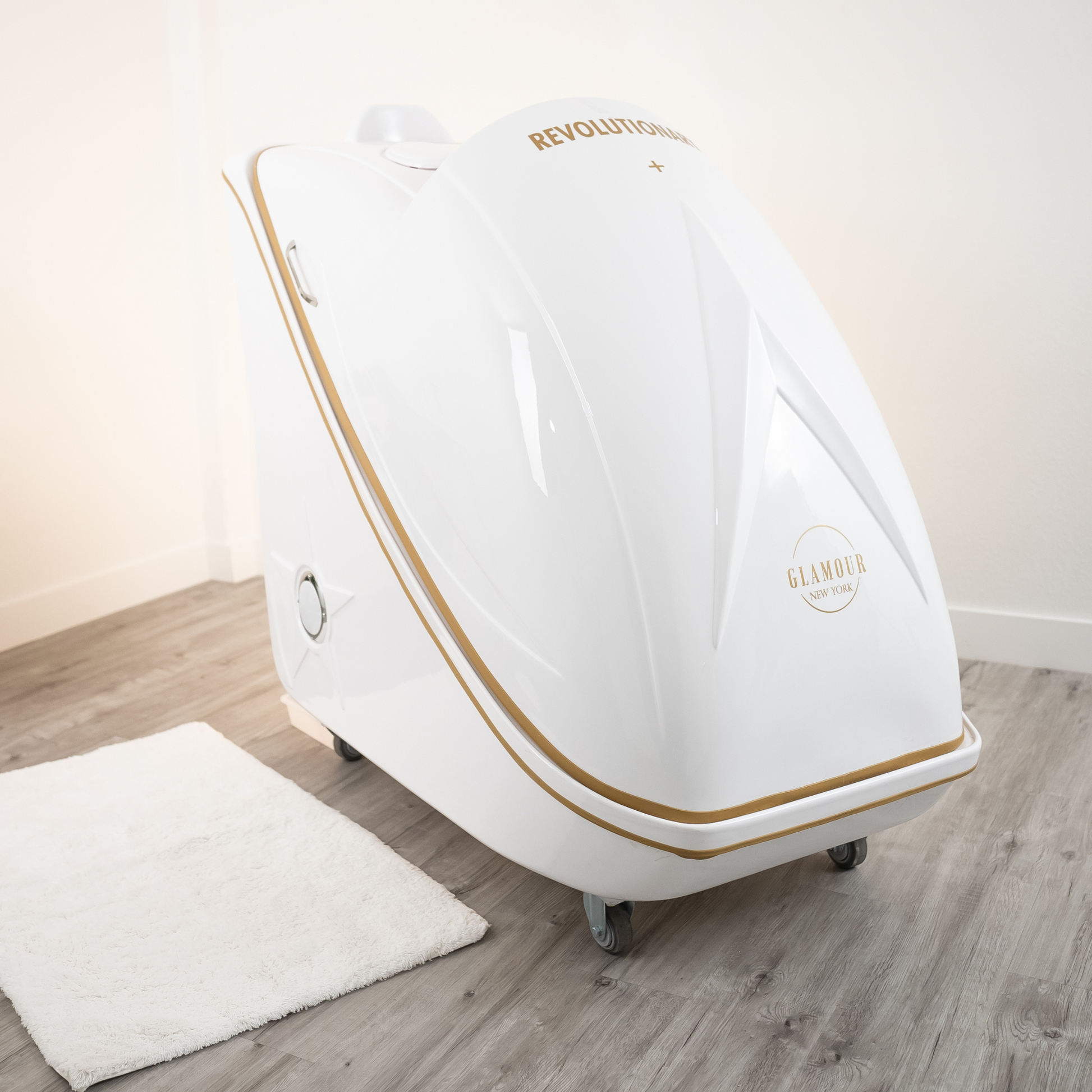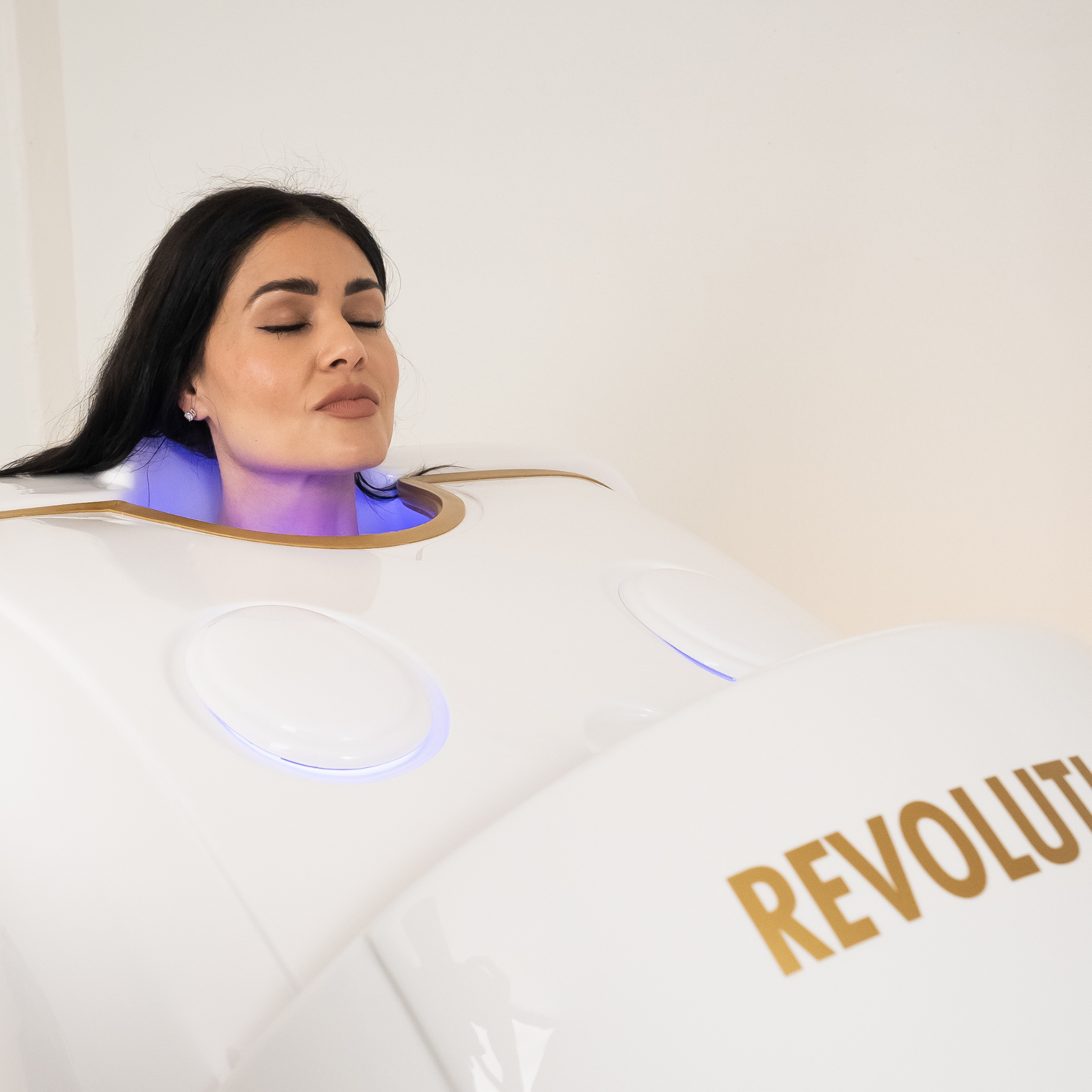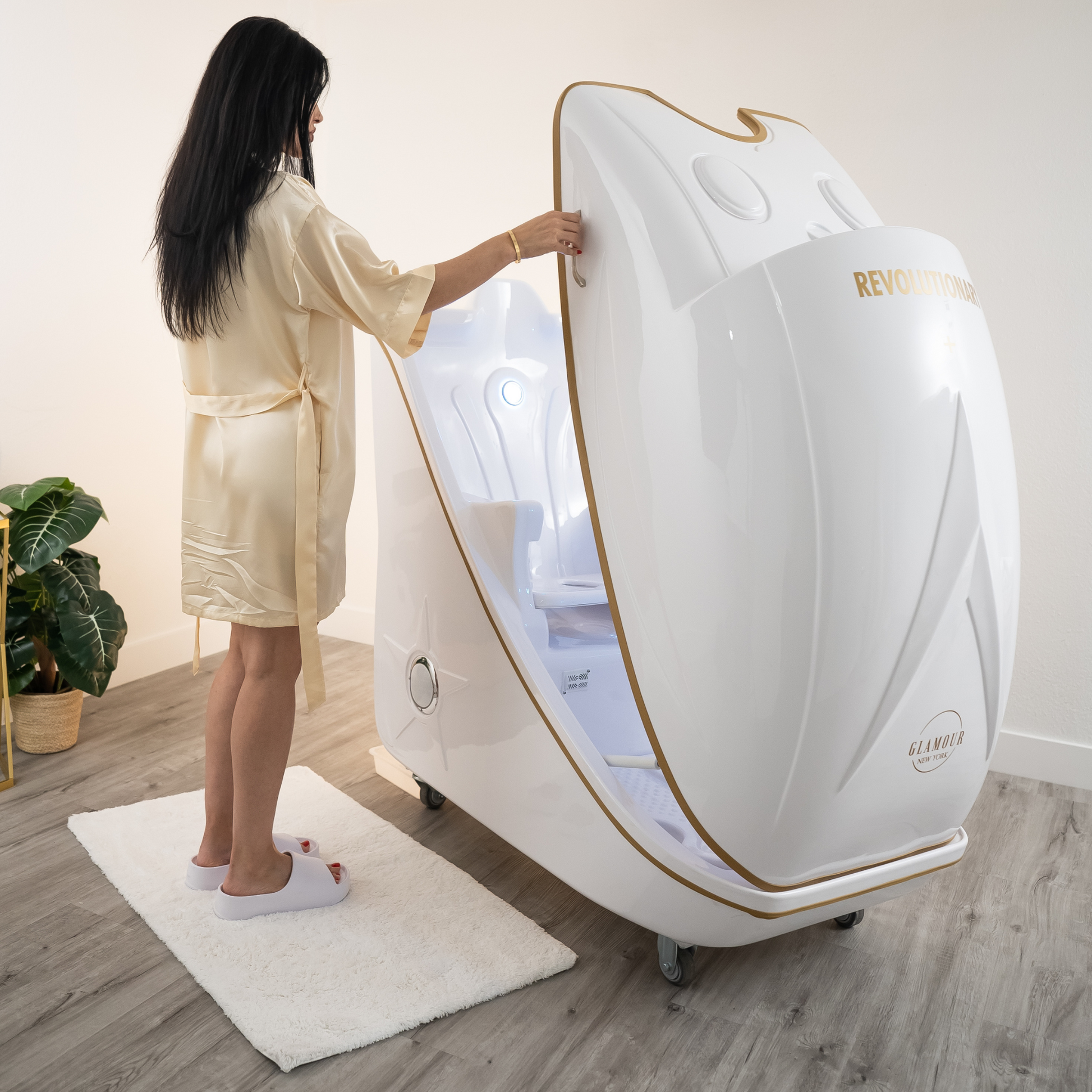 In addition to its core features, the Revolutionary+ includes gentle ozone cleansing, which purifies your skin by removing impurities, and soothing optical effects powered by LED lighting to create a calming ambiance throughout your session. The large interior is designed for maximum comfort, with ergonomic features like armrests and customizable seating height.